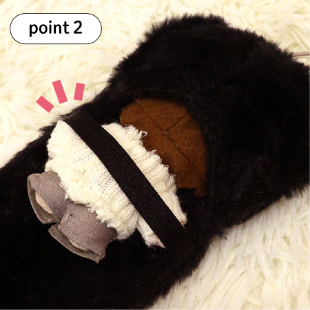 背面にはぬいぐるみを支えるゴムバンド付き!