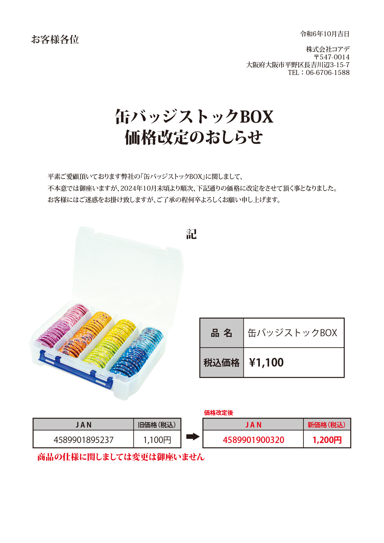 ・缶バッジストックBOX価格改定のお知らせ